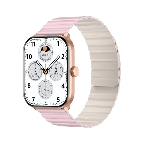 - بدنه رزگلد با بندهای سیلیکون مگنت صورتی-کرم و سیلیکونی صورتی
