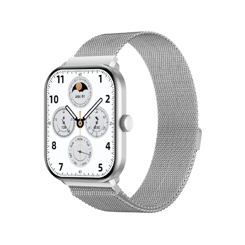 - بدنه نقرهای با بندهای استیل مگنت نقره ای و سیلیکونی خاکستری