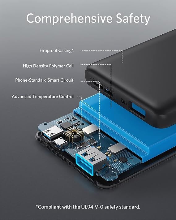 شارژ هوشمند: پاوربانک انکر 323 به طور خودکار تشخیص میدهد که دستگاه متصل شده به چه میزان جریان نیاز دارد و بر اساس آن، جریان خروجی را تنظیم میکند. این ویژگی از آسیب دیدن باتری دستگاههای شما جلوگیری میکند.