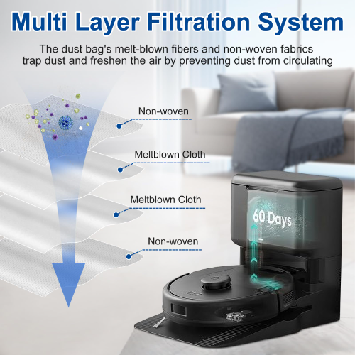 جارو رباتیک L60 Hybrid SES با قدرت 17000 پاسکالی زباله و گرد و غبار را به مخزن تخلیه خودکار انتقال می دهد و تا 60 روز قابلیت نگه داری دارد.