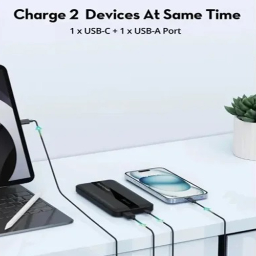 توانایی شارژ همزمان چند دستگاه از طریق درگاههای USB-C و USB-A.